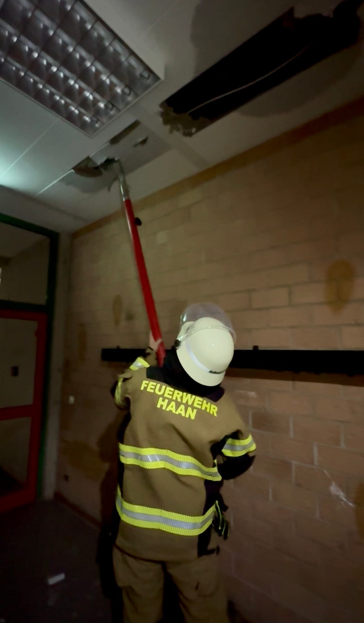 Durch die Feuerwehr Haan wurden drei Wassersauger vorgenommen, um die Wassermengen zu beseitigen. In aufwendiger Arbeit mussten zudem Zwischendecken eingerissen werden, da sich diese mit Wasser vollgesogen hatten und durchhingen. Die Feuerwehr war bis 16 Uhr im Einsatz. Morgen erfolgen gemeinsam mit verschiedenen Gewerken und mit Unterstützung des DRK Gruiten weitere Aufräumarbeiten und Ad-hoc-Maßnahmen.